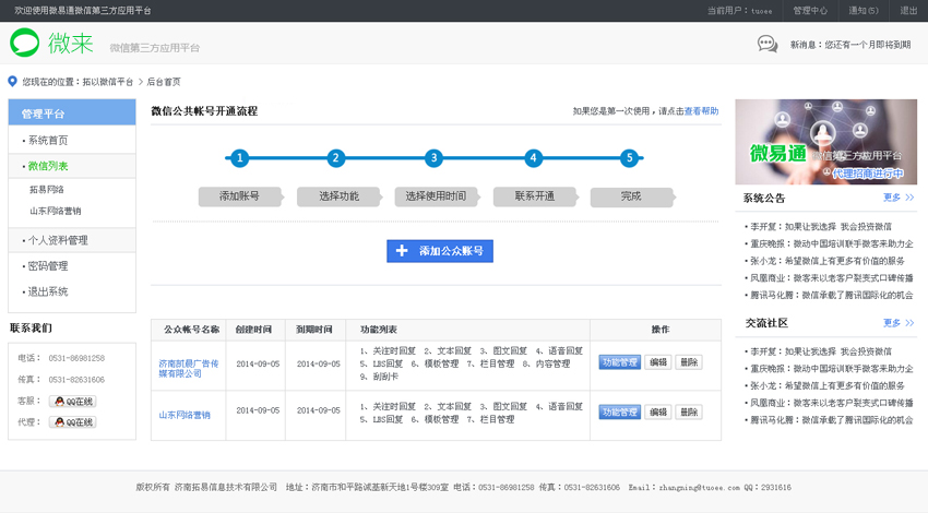自主研發(fā)的微信第三方管理平臺的后臺管理頁面
