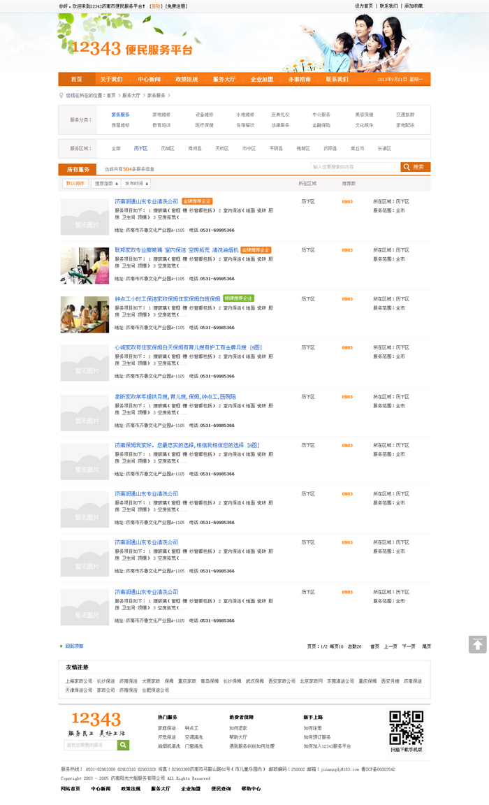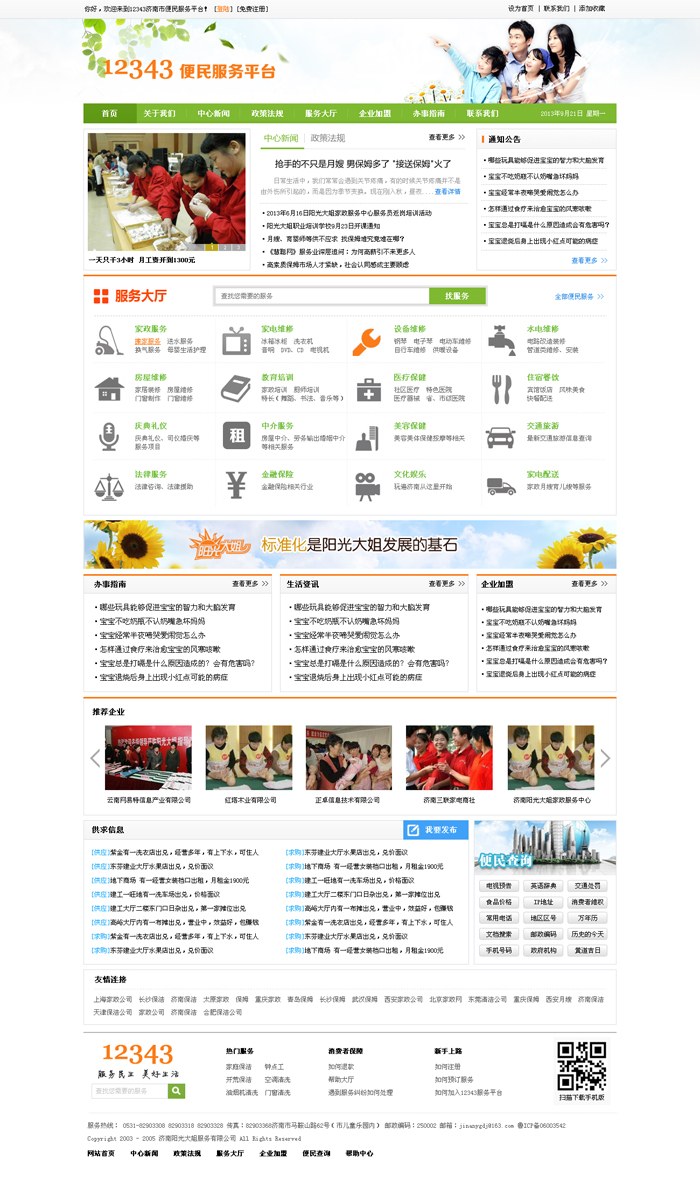12343社區(qū)家政服務(wù)中心,是濟(jì)南市民政局主管的權(quán)威性的家政服務(wù)平臺(tái),軟件由中創(chuàng)軟件負(fù)責(zé)開發(fā),白菜網(wǎng)絡(luò)負(fù)責(zé)網(wǎng)站前端頁(yè)面設(shè)計(jì)和html頁(yè)面制作。