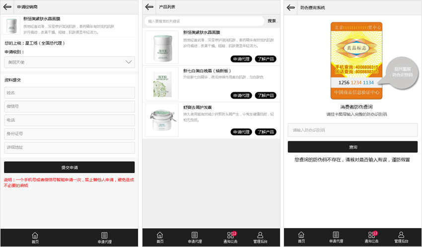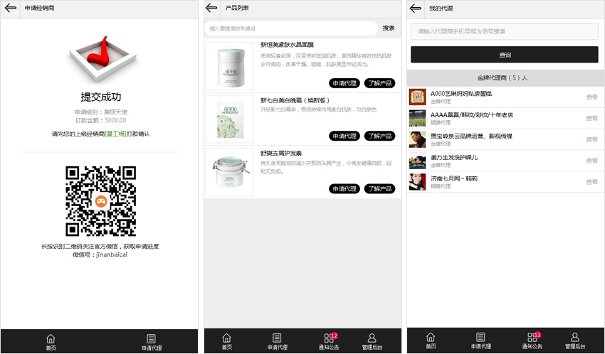 針對微商的微信多級分銷商管理系統(tǒng),清晰的等級制度,完善的收款及發(fā)貨管理等實用功能,代理授權(quán)書生成、產(chǎn)品真?zhèn)尾樵儭⒔?jīng)銷商等級自定義、產(chǎn)品展示、經(jīng)銷商申請與審核,完全根據(jù)微商定制的管理系統(tǒng)
