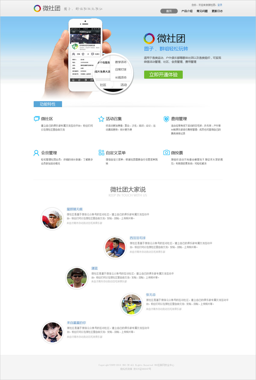 適用于各類運(yùn)動(dòng)、戶外俱樂部等群體社團(tuán)以及各類組織,可事先微信活動(dòng)管理、社區(qū)、會(huì)員管理、費(fèi)用管理,有效的解決社團(tuán)日?;顒?dòng)和人員管理工作