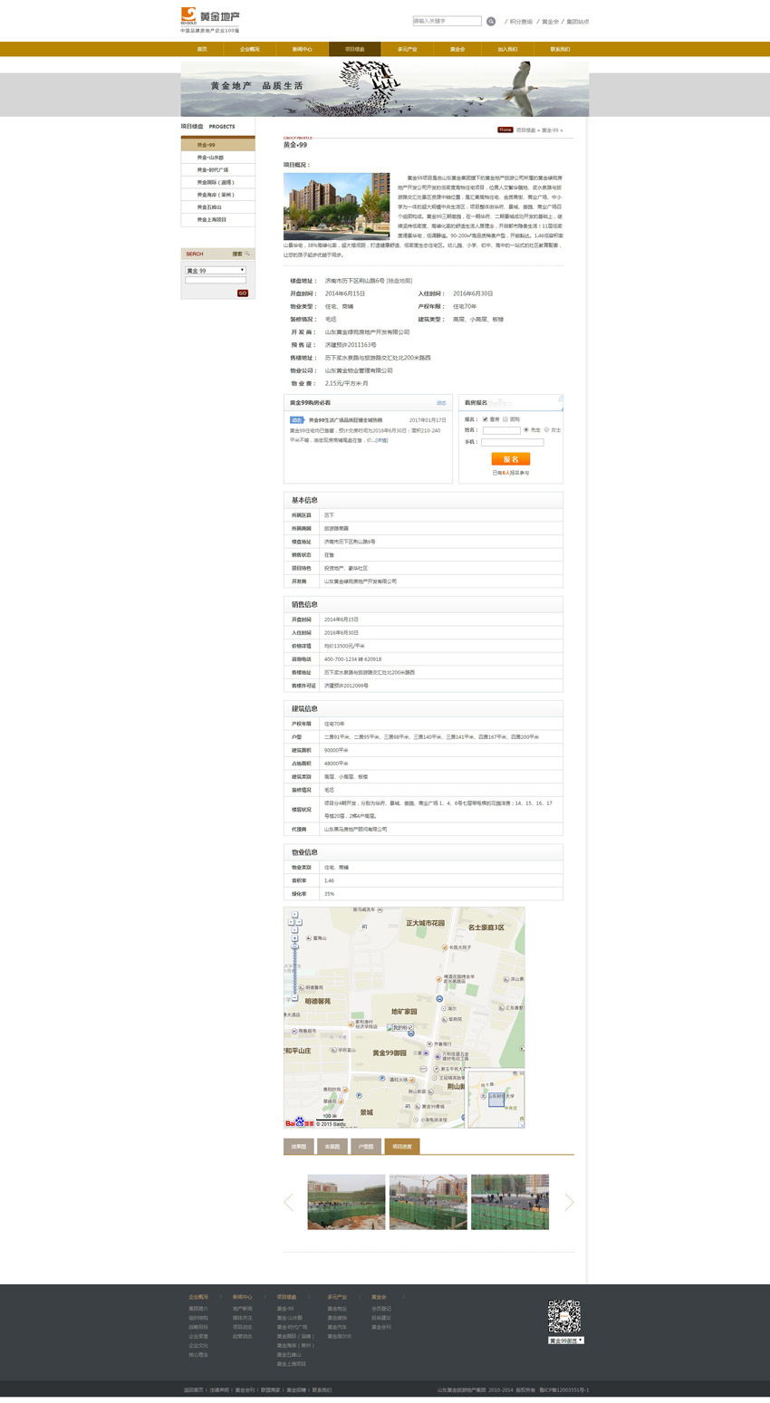 在地產(chǎn)開發(fā)領(lǐng)域,山東黃金地產(chǎn)旅游集團(tuán)成功開發(fā)了黃金時(shí)代、黃金時(shí)代廣場(chǎng)、黃金99、黃金國際、黃金海岸、黃金山水郡等涵蓋商業(yè)、寫字樓、低密度別墅、高檔住宅的一系列高品質(zhì)項(xiàng)目,集團(tuán)的黃金物業(yè)、黃金裝飾成為地產(chǎn)發(fā)展的有效支撐。至今“黃金地產(chǎn)品質(zhì)生活”已經(jīng)成為一種時(shí)尚生活元素。公司又充分依托山東黃金集團(tuán)優(yōu)勢(shì)平臺(tái),在成功進(jìn)軍上海地產(chǎn)市場(chǎng)的基礎(chǔ)上,積極開拓市場(chǎng)、搶占優(yōu)勢(shì)資源,逐步形成了立足濟(jì)南、面向山東、輻射全國一線城市的發(fā)展布局。