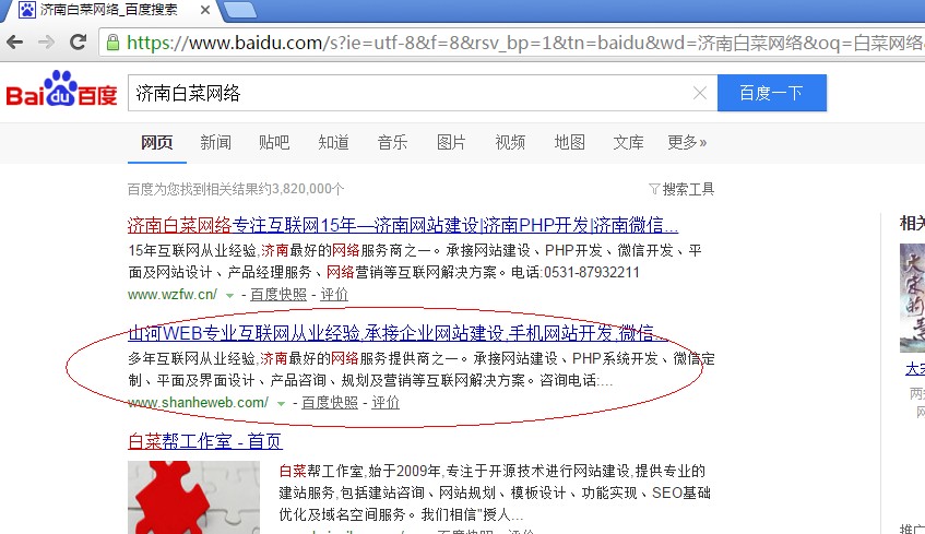 百度搜索“濟(jì)南白菜網(wǎng)絡(luò)”該公司赫然在列,SEO信息都不修改,作甚?