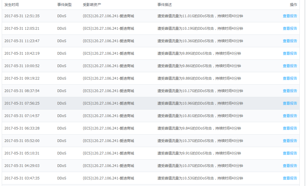 近日我公司客戶網(wǎng)站遭受DDOS攻擊,造成網(wǎng)站超過24小時(shí)無法訪問,期間客戶需求幫助,無奈對(duì)于DDOS攻擊我么幾乎無計(jì)可施。從下圖可以看出,對(duì)方連續(xù)不斷的使用10G左右的流量攻擊網(wǎng)站。而阿里云ECS只提供5G的DDOS攻擊,而高防IP服務(wù),可低于20-40G流量攻擊,每月最低費(fèi)用16800,對(duì)于普通網(wǎng)站和公司來說,都是一筆天價(jià)費(fèi)用了。